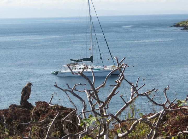 Hawk overlooking Nemo II from height of Rabida Island